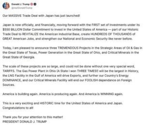 Trump Unveils Japan's First Wave Of Mega US Investments: Oil, Gas, Minerals From Ohio To The Gulf Details of the much anticipated US-Japan trade mega deal...Read more
